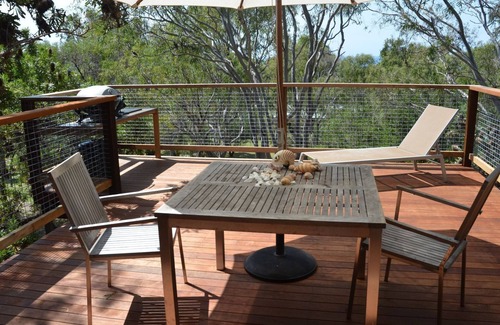 This smart compact cottage is for one couple only. Mia Mia is perfect for a couple wanting to totally escape and explore this special and isolated part of Fraser Island. Open plan design, generous deck with filtered ocean views, comprehensively equipped kitchen and almost open air bathroom.. Perched in the trees, surrounded by Banksias with a filtered view of the ocean, Mia Mia is ideal for a couple looking for affordable boutique accommodation in quiet surroundings at Orchid Beach. Self-contained with private access and parking. Lower deck with a large storage space also accommodates a small laundry. Please note Orchid Beach can only be accessed by driving along the beach with a high clearance 4WD and within 3 hrs of low tide. Note linen is not provided. We can put you in touch with local provider.