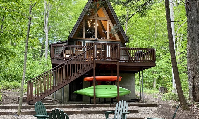 Michigan-A-Frame:Bonfires, Hot Cocoa, and Fall Magic in Kalkaska | Cabin in Kalkaska