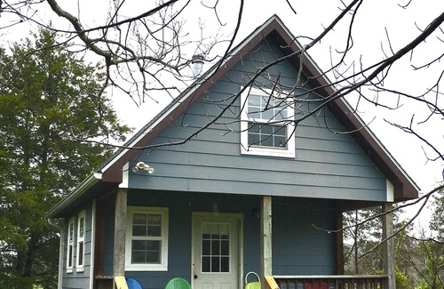 I would like to tell you that we have lots of fine and luxurious amenities, but we don't, this is a very basic little place. It has a small bathroom with shower, a tiny furnished kitchen, that includes a dorm style fridge, toaster, coffee pot with coffee and tea provided. Toaster, microwave, two burner hot plate, with pans and associated cooking tools. There are dishes and a few clean up supplies. there is also a charcoal grill, bbq tools (charcoal provided), electric heat, a/c, and a rancher style wood burning stove, if you want to make it extra cozy. There is a queen bed in the loft that is accessible through a very steep staircase, and a pull out futon that converts to a full size bed with a memory foam mattress for sleeping on the main level.