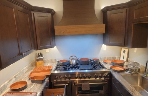 2 - Cook includes professional kitchen with z-line range and 8 person dining table