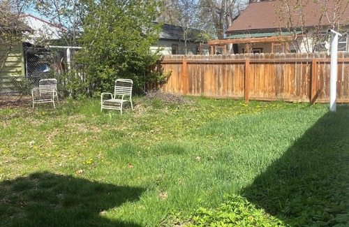2 bedroom/1 bath home with fenced in back yard and plenty of natural light. With Mid-century modern furnishings, this home is the perfect place to settle in to Missoula. The large sleeper sectional is great for relaxing and watching TV or use it for extra guests. Each bedroom has their own dressers and closet space and comfy queen beds.