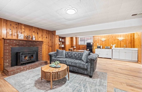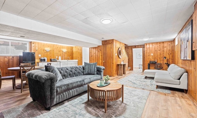 Escape to our charming basement unit that combines rustic cabin vibes with mid-century flair. This cozy retreat features a comfortable queen bed, perfect for accommodating 2 guests.