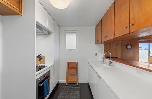 Take it easy at this unique and tranquil getaway. Recently renovated, restored original wood paneling, new kitchen and bathroom. 5 minute walk to the beach, Pacific Ocean, groceries, dining, and everything the small town of Stinson Beach has to offer. Views from the deck of ocean and town. You can hear the waves. This is a rustic spot, both Stinson Beach itself and our apartment. Fiber high-speed internet. Enjoy a stylish experience at this centrally-located place.