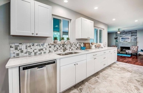The kitchen is large and open as well, with lots of counter space and island seating to gather around while preparing meals or entertaining. The kitchen equipped with an espresso machine, blender, mixer, dinnerware, wine glasses, rice cooker, crock pot and much more.