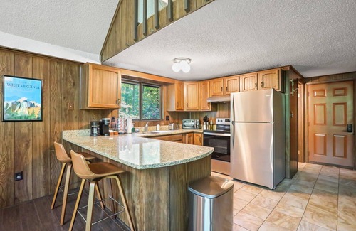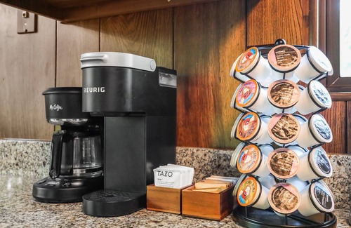 Prep meals in the kitchen, which is outfitted with stainless steel appliances (please note: no dishwasher or garbage disposal), granite countertops, and basic cooking supplies like salt, pepper, and oil. You also have access to a grill on the deck, with propane provided. When you wake up, enjoy a hot cup of coffee or tea on the deck with the Keurig and provided supplies (K-Cups, sugar, creamer packets). We also have a traditional drip coffee machine.