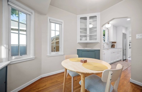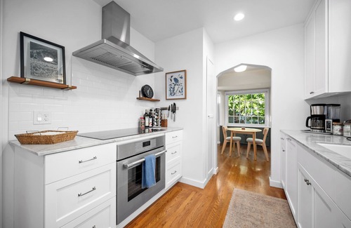 Welcome to our stylish mid-century modern bungalow near McKinley Park in Sacramento! This charming 2-bedroom, 1-bath home offers a beautiful backyard with a farm table, lounge chairs, and a soothing water fountain, ideal for outdoor dining or unwinding. The updated kitchen includes all new Thermador & Miele appliances. Located in a peaceful, family-friendly neighborhood, this cozy bungalow combines comfort, style, and convenience. Book your stay today and enjoy relaxation with mid-century charm!