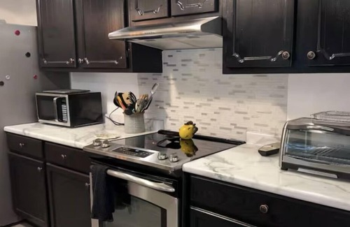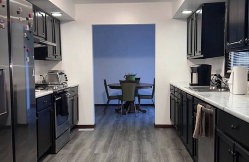 Listen to total eclipse of the heart, or Sting Walking on the Moon on the vintage record player while catching a glimpse of the moon over Muncie. If you’re searching the heavens for the intersection of cosmic comfort and universal accommodations, look no farther. This Mid-Century Modern furnished home is perfect for group trips, 12 minutes to Ball State, and minutes from anything you’d need. Spacious with a full kitchen, everything you need!