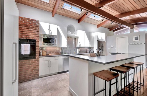 This home has been beautifully updated. Custom modern kitchen with soft closing cabinets and drawers. Table settings for 12. The indoor dining table comfortably seats 6, there is an outside dining table that fits 6, and the breakfast bar sits 4. Plenty of room for a dinner or get together with friends or family. There is a casual TV/Family room, laundry closet, and a formal living room in the main living area of the home. The kitchen and hallway floors are heated.