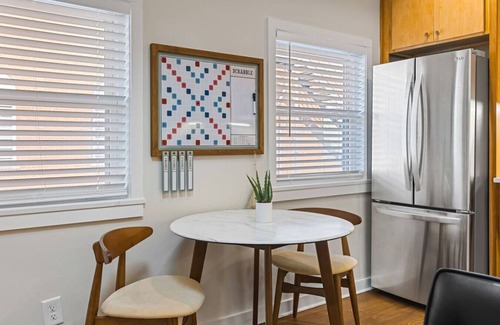 Embrace timeless design and contemporary comfort in this stunning and updated mid-century modern Nashville condo in The Kaleidoscope. Only 3 miles (less than 10 minutes) to downtown Broadway bars! Walking distance to restaurants, coffee & grocery. Near hot spots such as Pearl Diver, The Wash and Pelican & Pig. Located in the trendy & eclectic East Nashville neighborhood, you’ll be surrounded by cool cafes, art galleries, boutique shopping, and live music hotspots. Free parking & a washer/dryer.