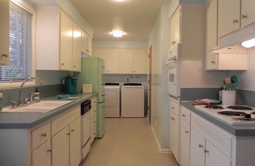 Need a long-term or short-term stay? This newly updated, 2-bedroom, Mid-Century Modern duplex in the "Ferry Street Bridge" area of Eugene -- with easy access to popular restaurants & shopping and only 4 miles to UofO and downtown. It's perfect for 1-2 couples, solo adventurers, business travelers and Duck fans! Fully furnished with all you'll need, including a full kitchen, on-site laundry, wi-fi and 42" SmartTV so you can stream from your Netflix, Hulu and Amazon accounts. Plus, you'll have a 1-car garage and fenced backyard!