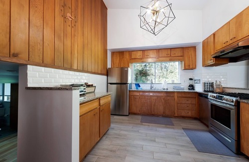 Our 2 bedroom, 2 bathroom 700 square foot cabin was completely remodeled in fall 2023 and features a fully stocked kitchen, brand new furnishings, AC, WIFI and a patio with seating, BBQ Grill and a Gas Fire Pit.