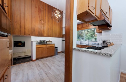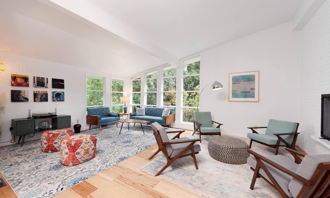 This is a unique opportunity to stay in a residence originally built in 1962 and designed by one of Frank Lloyd Wrights students. The residence was completely remodeled and finished in early 2023 remaining true to the period and making it much more than your typical vacation rental. The luxurious home is furnished with high quality period furnishings, Smart TVs with cable in 4 of the 5 bedrooms, a fully stocked kitchen, and beautiful deck with a fire pit and valley views. Central AC was also installed.