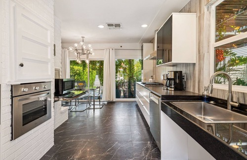A sophisticated 1950s addition with a striking sense of space and style. Canyon Chic features a flowing open-plan layout, high ceilings, and a statement gas fireplace—creating a living space that feels both expansive and intimate.
