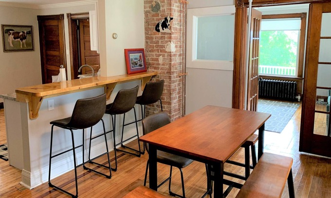This early-1900s Middlebury home has long been split as a duplex with an upper and lower apartment. We have made recent updates, decorated, and furnished unit #1 here on the first floor for short term use and we know that you will have a positive experience here!