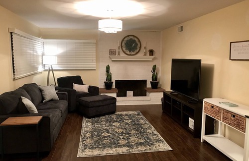Spacious 3 bedroom 2 bath updated home. Laminate wood and tile floors through out. Huge backyard with beautiful grass to play and stretch your legs. Great for families with small children, business travelers and groups of friends. Located in the middle of abilene. Minutes from McMurry and 8-10 minutes from ACU, Cisco College, HSU, both hospitals and pretty much anywhere else you could need!
