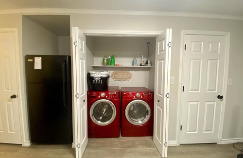 Two of the bedrooms share a Jack & Jill full bath and the master bedroom has its own full bath. Both bath rooms have tub and shower, towels and toiletries are provided. The kitchen is fully equipped with utensils and cooking necessities. The coffee pot is a dual Keurig & Drip, coffee grounds and fliers are provided.
