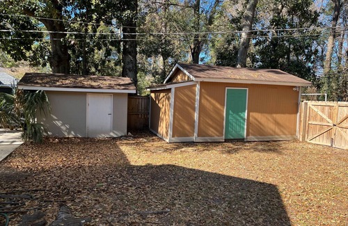 One block from Candler Hospital. 2 bedroom 1 bath with hardwood floors. Fenced yard with fire pit. Two storage buildings, Full kitchen with gas stove, dishwasher, and full size refrigerator. Dinning table for 4 and separate casual dinning for 4, that also serves and a desk. Small sunroom and more. Wi-Fi and utilities included.