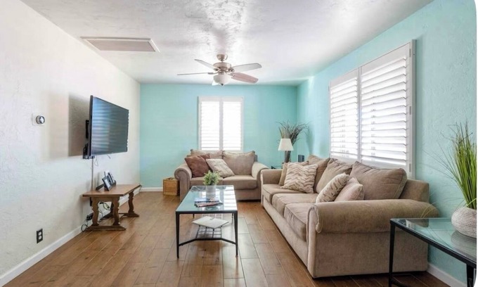 Located in the Heart of Tucson on a Corner Lot, This Home Has Been Tastefully Redone ! The updated kitchen features granite countertops and opens to a spacious dining area—ideal for both casual meals and entertaining. As you step inside, you’ll find a long, inviting living room with plenty of seating, free Wi-Fi, and DIRECTV for your entertainment.