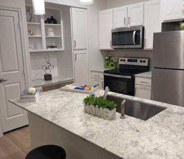 Offering a garden and a terrace, Midtown Getaway in Houston is close to Discovery Green Park and George R. Brown Convention Center. Guests may go for a swim in the private pool. Free Wifi is available throughout the property and Houston Toyota Center is a 17-minute walk away. Providing access to a balcony, the apartment consists of 2 bedrooms. The air-conditioned apartment also offers a flat-screen TV, a fully equipped kitchen with a dishwasher, a seating area, washing machine, and 1 bathroom with a bath. The accommodation is non-smoking. Minute Maid Park is 1.7 miles from the apartment, while Wortham Center is 1.8 miles from the property. William P. Hobby Airport is 9.3 miles away.