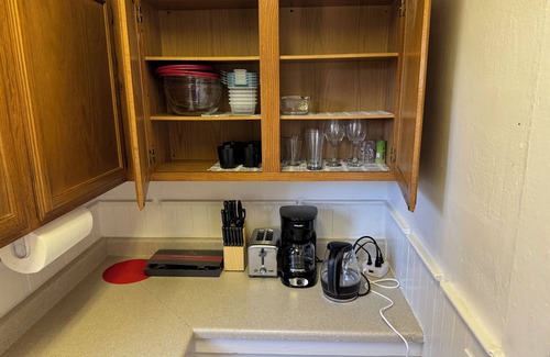 Kitchen: Refrigerator, Oven/Range, Microwave, Coffee Maker, Electric Tea Kettle with Assortment of Teas, Toaster, Plenty of Cupboards and Storage Space, Brita Water Filter, Water Boiler, Pots and Pans and other Kitchen Utensils,