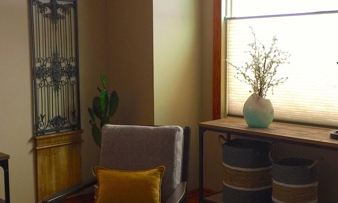 A private house, the Bungalow's one story, main level homes layout is comfortably appointed, updated, in a desirable neighborhood. Stay for some needed Rest and Relaxation while traveling or visiting/working in the Austin area. Ideal for one or two guests. Modern updates and amenities make the "Bungalow" a great stay. Full Kitchen/full bath, King size bed, Office, Smart TV/DVD (movies), Music, and Washer/Dryer. Maximum (14) night stay. No longer term stays.