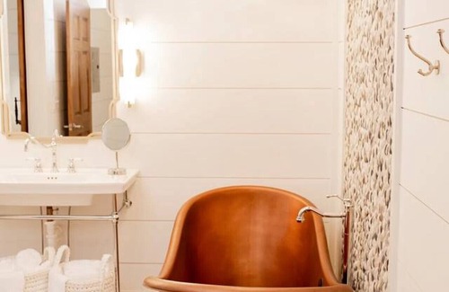 The Miette Suite, known as our Honeymoon Suite, is named after one of most awarded cheeses produced on the farm. The Miette, French for “small, sweet thing”, exudes romance and evokes a serene calmness in its tall ceilings and open space floor plan. Immerse yourself in the oversized copper stand-alone tub, rinse beneath the rain showerheads in your vast shower and then curl up in your comfortable bed topped with memory foam mattress. Upon morning sip coffee together as your take in the countryside setting from your large window or step outside onto your private deck and relax in your adirondack chairs. This suite will exceed all your expectations and reset your soul.