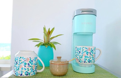 While you're here, you can enjoy all the comforts of home and more, including a refrigerator and free WiFi, as well as a flat-screen TV and Netflix. Other amenities include premium bedding, towels, a ceiling fan, and an ironing board.
