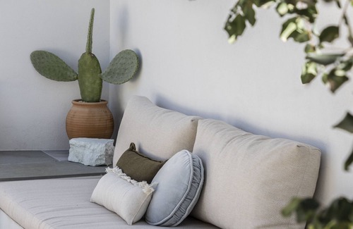 The Villa is located in a quiet area of Agia Efimia, just 200 meters from the sea and the village center. ''Mikro'' is a high-end boutique villa that has minimalistic style with a traditional character. It has been thoughtfully designed throughout with high-end materials, furniture, appliances and lighting, and aims to offer an enhanced holiday experience that introduces guests into the Kefalonian lifestyle. The exterior includes a plunge pool (spa/ jacuzzi) with sunbeds and a shower, two seperate built in furnished lounges and a complete barbeque area with gas grill, with sink and dining table. The interior is an open plan space with terrazzo flooring and a fully equipped kitchen (including dishwasher), a cosy living area with 40 inch smart TV, queen size bed, a laundry (including dryer) and a bathroom with a spacious shower.
