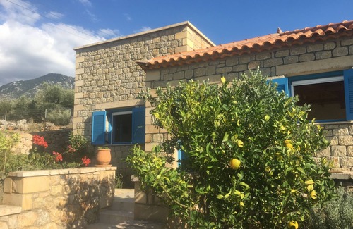 This 2 bedroom, 2 bathroom traditional stone villa is situated just outside the medieval mountain village of Proastio, on the Mani peninsula above the seaside village of Kardamyli. The nearest beach, in the unspoilt bay of Kalamitsi, is a 7-minute drive or 35-minute walk down an ancient path.