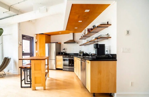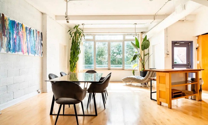 Beautiful 1,500 Square Foot Loft with 11 foot ceilings and lots of windows for natural lighting. Located on the iconic Saint-Laurent Boulevard in the heart ❤️ of the Mile End. Perfect location for remote work or just for travelling in the city.