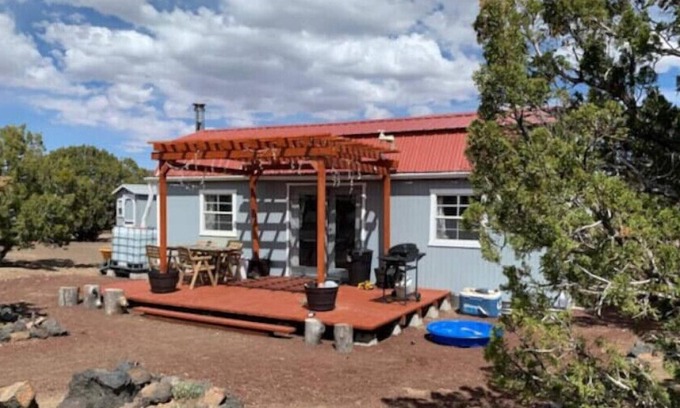 Relax with the whole family at this peaceful place to stay among the junipers and volcanic craters just outside of Flagstaff. This quaint off-grid cabin has all the amenities you'll need to enjoy and explore the wonders Flagstaff has to offer. Grand Falls, Meteor Crater, Walnut Canyon, Sunset Crater, Wapatki Nat'l Monument, and oh yeah, the Grand Canyon! Hike among the junipers or up Junction Crater right from your front door onto the Coconino National Forest overlooking the Painted Desert.