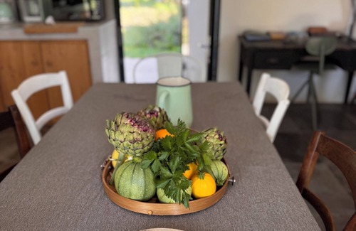 Outside, there is also a small vegetable garden in which you can of course take the various vegetables (zucchini, tomatoes, peppers, etc...), but also aromatic herbs.