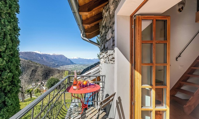 Unwind at Mille Colline la Casa 1 duplex, a beautiful 1-bedroom apartment set high above Giubiasco. Surrounded by forest and sweeping valley views, this unique hillside retreat blends timeless architecture with peaceful natural surroundings, offering a truly one-of-a-kind escape.