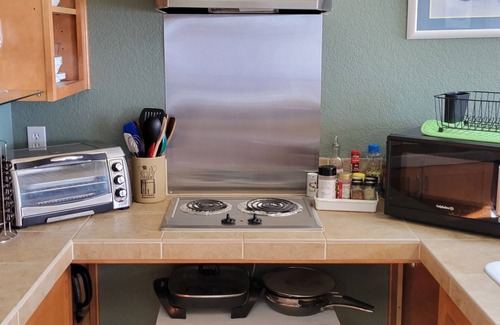 It is perfect for relaxing and taking in the tranquil wonders of Nature. The studio offers a private outdoor deck, perfect for a cup of coffee, watching the heron’s catch a fish, or Alfresco dining. Studio includes a tempurpedic queen bed, full bath with shower, well stocked kitchen, outdoor pub table/barbeque, Wi-Fi, smart tv & games, couch folds out into a full bed.