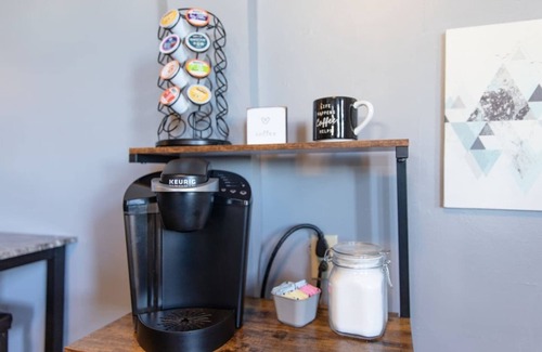 This bottom-unit studio in a two-unit house offers a private entrance and plenty of parking. Inside, you’ll find a fully equipped kitchen and a coffee bar complete with a Keurig for your morning brew. Stay connected with high-speed internet, and unwind with a 42” TV featuring local channels via antenna plus an Amazon Fire Stick for streaming (just bring your own logins).