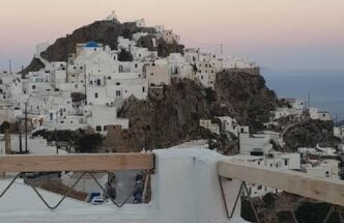 From the rooftop you enjoy the unobstructed view of Chora , port and vous