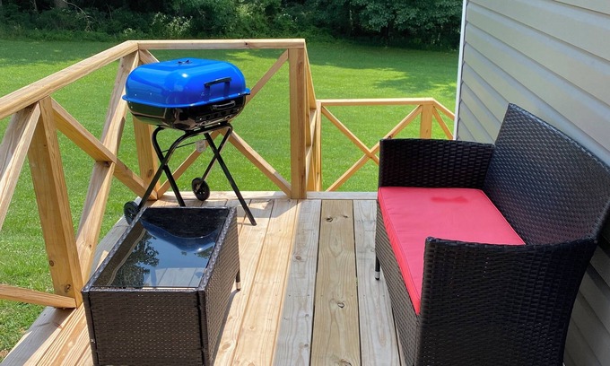 MIL suite with separate entry in wooded country setting. This is our home we live in. The suite adjoins our home but also has separate entrance. Suite separated from main home by two deadbolt locked doors. One bedroom, living room, small kitchen area and bathroom. Clean, cozy. No stove but hot plate, charcoal grill, microwave and air fryer provided. Fridge and freezer also. Shower stall in bathroom. Cozy, comfy queen bed. Blow up queen air mattress(2) also available. Baby playpen available upon request Outside area is over 5 acres and you're welcome to walk around and sit at the small pond or near the barn. Yard has trampoline for kids, above ground pool and basketball goal outside. NEW Deck outside suite perfect for overlooking the woods or grilling on provided charcoal grill. Quiet area. Very close to Yellow Creek Park and highway 54. Must walk around house on grass to entrance. Children must be supervised around pond or pool. Swim at own risk. For stays over one week, guests will need to supply own toilet paper and paper towels after starter supply runs out. NO smoking of anything. If you smoke, $200 fee non negotiable. We do have a inside dog on the property.