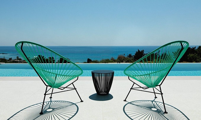 The 60sqm luxury villa has two bedrooms, a living room with kitchen, and two bathrooms. Your comfortable sleep is guaranteed with beds from Coco Mat. Two king size or twin beds for up to four persons. The private veranda offer lots of sun-filled space for you to relax. Unobstructed view to the Ionian sea will bring the laid back feeling in you.