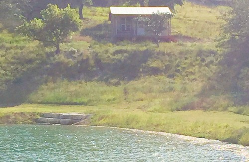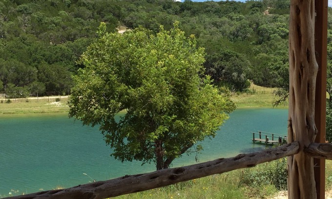 This newly constructed wood and rock cabin has a front porch that overlooks a pond. It is perfect for a quiet, secluded get-away from the city. You can go hiking over the hills, fish down on the pond or just relax in the hammock. All kinds of native and exotic Texas wildlife can be seen on the property. The cabin is located just a half mile off Cade Loop road on 120 acres. This area is the most beautiful part of the Texas Hill Country. Though the cabin is out in the country, it is less than a five minute drive to the Guadalupe River and Ingram Lake. The cabin has 400 square feet of living area with a living room/ kitchen, bedroom and bathroom. The kitchen has a small refrigerator, microwave, sink, and large toaster oven. The living room has a couch that converts into a Queen bed. The bathroom has a sink, toilet and shower. Ceiling fans are in every room and there are two fans on the front porch. Electric hotel-like ac/heating units in the bedrooms keep you warm or cool. all of this, plus the modern convenience of Limited data ; FREE WI-FI! It is a perfect place for a couple or a small family. Special Notice the lake is full again. We have begun restocking with fish , We expect we will have catch and release again in the fall of 2025.There are more swimming and fishing opportunities on Lake Ingram 5 minutes away. So bring your Kayaks or conoes if you want.