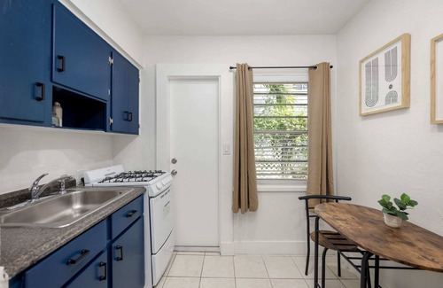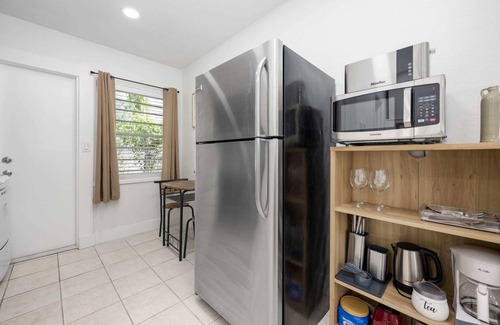 Mimo5-2 is simply relaxing and cozy, it is an escape from the hustle and bustle of Miami, and a staycation unlike any other. In this suburban area of you can spend the day exploring by car, bike, or scooter and return to your peaceful home away from home. Have some fun while you're relaxing and watch a movie on the various streaming platforms. The natural light and cozy living space provides guests with a memorable experience. The kitchen has a cozy seating arrangement for 2 and all the kitchen essentials you will need for a cup of coffee in the morning.