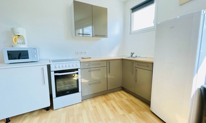 Located 300 metres from the entrance to the Bains les Bains thermal baths (the route to the thermal baths is flat). The Mimosa studio is located on the ground floor of the Residence. It is fully equipped and has an open plan kitchen and living room (with flat screen TV). The kitchen has an oven, microwave, electric hob, kettle, toaster, etc. The bedding is composed as follows: Two 90cm beds that can be joined together to form a single 160cm bed. This studio is soundproofed and overlooks the market place of Bains les Bains. Finally, free unlimited Wifi, free laundry, parking space in front of the establishment. Rest guaranteed during your spa treatment. See you soon