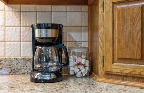 -Fully stocked with stove, microwave, oven, coffee pot, toaster, cookware, utensils