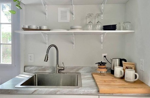 The Sweet Cottage awaits your Austin stay with meditation, writing, yoga, or purely relaxing away from the town's hustle. Set on a quiet street in the creative East Austin neighborhood, the cottage is ideal for getting away from it all or being close to some of the iconic venues of the area.