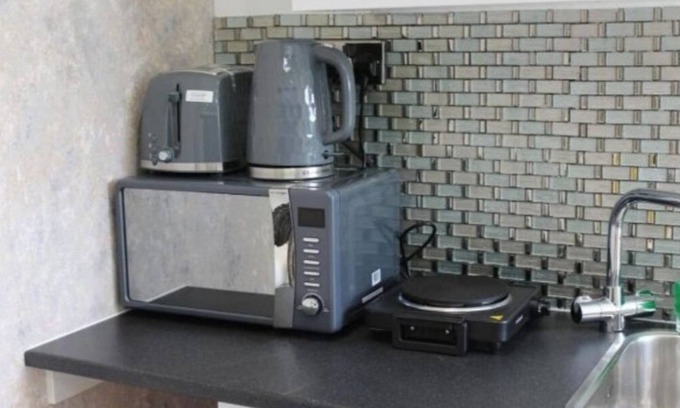 Comfortable Living Space: Mini Cosy Studio Flat Milton Keynes offers a one-bedroom apartment in Milton Keynes. The ground-floor unit features a private entrance, patio, and a fully equipped kitchenette.