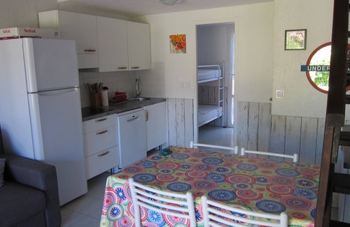 Mini air-conditioned villa in a seaside residence in Ghisonaccia. Located 150 m walk from a beautiful sandy beach accessible by a footpath. Close to shops, nautical activities, equestrian center and an animal park.