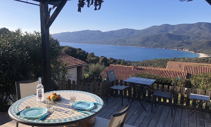 Mini-villa, magnificent sea view - heated pool - residence in Serra Di Ferro | Villa in Serra-Di-Ferro