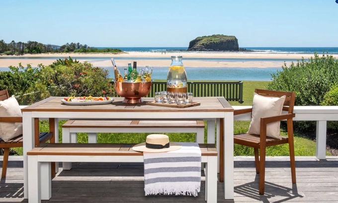 Minnamurra Island View has breathtaking views and is in an ideal location for families wanting a relaxing short break getaway or extended holiday. The rear garden leads onto the reserve, and the living areas, deck and garden all have stunning views of the river, Stack Island and Minnamurra Headland. This provides an idyllic setting for your coastal escape.