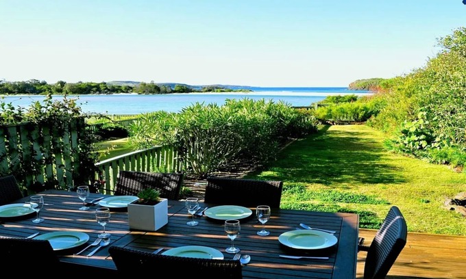 The Villa is the closest property to the ocean at the dazzling Minnamurra River mouth, backing onto a hidden sandy beach across a grassy verge. Swim across the estuary to secluded Mystics Beach, walk the beach between the ocean and the National Park. Only 1.5 hours south of Sydney, tranquil Minnamurra yet a world away from the city life.