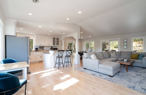 When you enter Carlow Manor you're greeted by a sense of calm as you escape the busy world. This modern home has tons of natural light and plenty of space for all kinds of travelers.