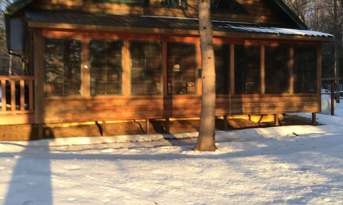 Our cabin was formerly part of the "Whispering Woods Cottages", a family-owned and managed property from 1991 until 2020 when we purchased the first of four cabins offered for sale as single-family properties. Two other cabins on site are short-term rentals as well. If you have a larger group, there may be availability to rent as many as 3 cabins (comfortably sleeping 18). Our property is located 17 mi. west of downtown Minocqua and South of Hwy. 70. If fishing is your thing, Squaw (now Amber) Lake is a 736-acre Class A Muskie Lake also offering up walleye, blue gill, and crappie: only steps to the lake to set up your portable ice fishing shanty for year round fish fries, or for accessing the many biking or snowmobile trails in the area. Our cabin is 75' from a level lakeshore where you have the use of a shared pier with electricity, sandy beach and campfire pit. We hope the year-round relaxed environment will help you unwind, relax and reconnect.